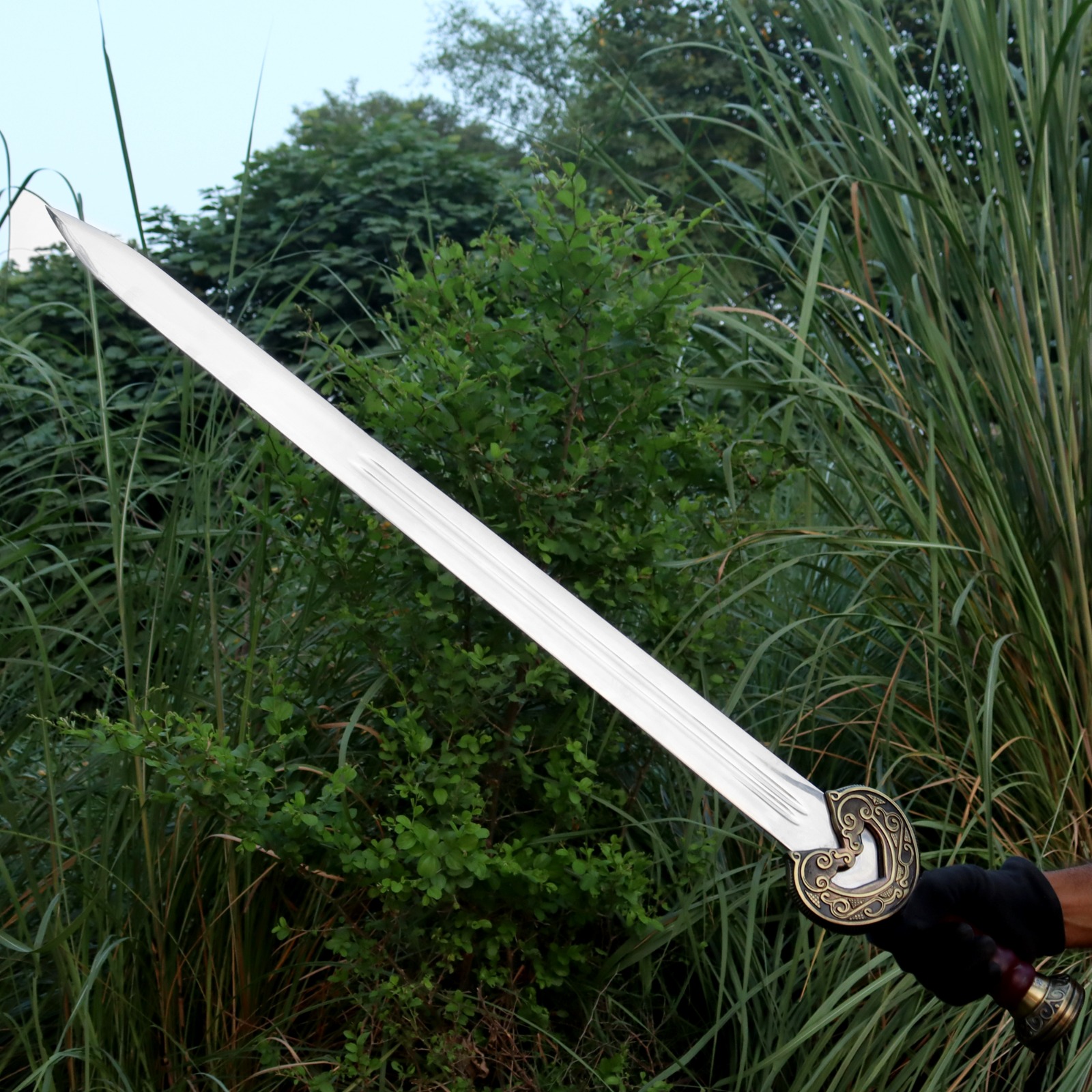 • Blade Design: Herugrim features a broad blade, which is both functional and aesthetically impressive. Its length and width are suitable for powerful strikes, befitting a king of Rohan. The blade is often described as having a clean and polished appearance, reflecting the nobility of its wielder.